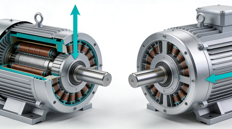 அச்சு ஃப்ளக்ஸ் (இடது) எதிராக ரேடியல் ஃப்ளக்ஸ் (வலது) குறுக்குவெட்டுகள்