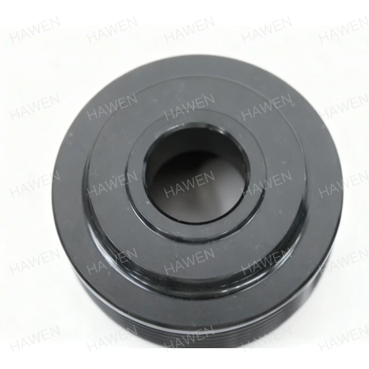 முத்திரையிடப்பட்ட ஸ்டீல் கப்பி உயர்தர குளிர்-உருட்டப்பட்ட எஃகு தகடுகளிலிருந்து தயாரிக்கப்படுகிறது, அவை ஸ்டாம்பிங் செயல்முறை மூலம் கப்பி உடலில் உருவாகின்றன. வார்ப்பிரும்பு அல்லது அலுமினிய அலாய் புல்லிகளுடன் ஒப்பிடுகையில், முத்திரையிடப்பட்ட எஃகு சிறந்த பொருள் சீரான தன்மை, அதிக கடினத்தன்மை மற்றும் வலுவான தாக்க எதிர்ப்பை வழங்குகிறது. ஸ்டாம்பிங் செயல்பாட்டின் போது, ​​எஃகு தகடு அனீலிங் மற்றும் மேற்பரப்பு சிகிச்சைக்கு உட்படுகிறது, கப்பியின் வலிமை மற்றும் நீடித்த தன்மையை உறுதி செய்கிறது, அதே நேரத்தில் சுழலும் செயலற்ற தன்மையைக் குறைக்க உதவும் இலகுரக வடிவமைப்பைப் பராமரிக்கிறது.